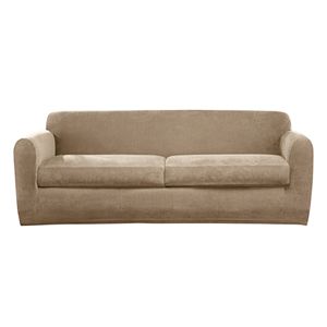 Sure Fit Stretch Plush 2 Piece T Cushion Sofa Slipcover Bed