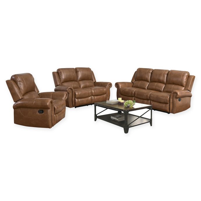 Abbyson Living Corrine 3 Piece Reclining Sofa Set In Cognac Bed Bath Beyond