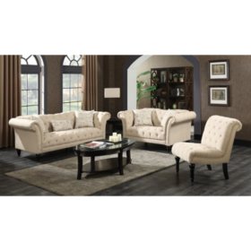3 Piece Sofa Set With Tufted Sofa And Set Of Two Accent Chair For