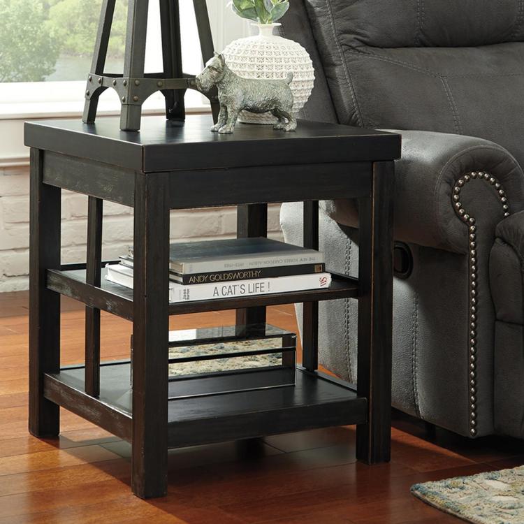 Signature Design By Ashley Gavelston Distressed Black Square End