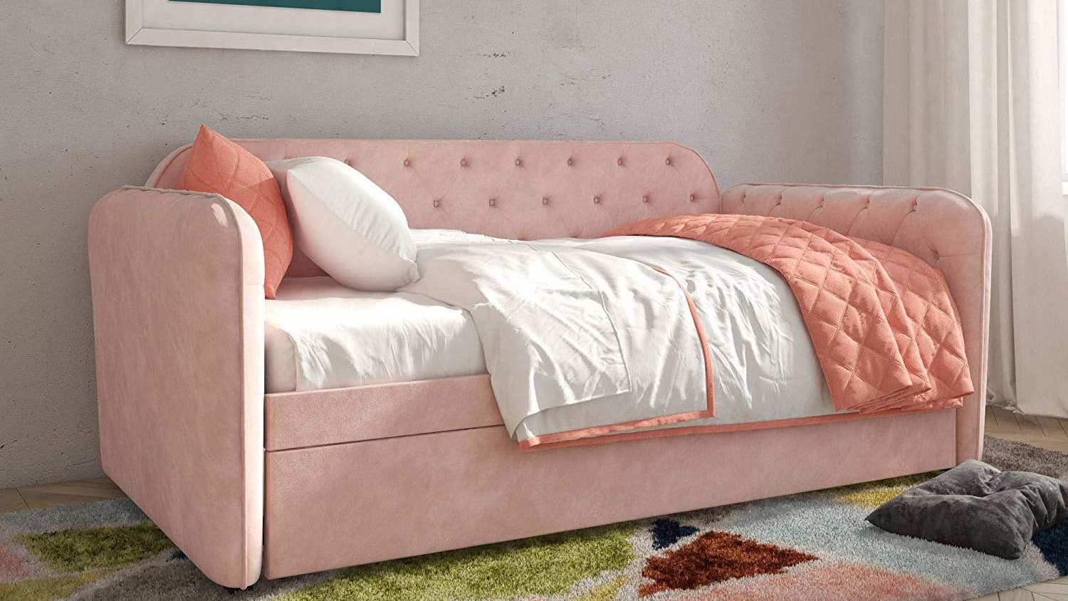This Pink Velvet Daybed Is Also A Trundle Bed Apartment Therapy