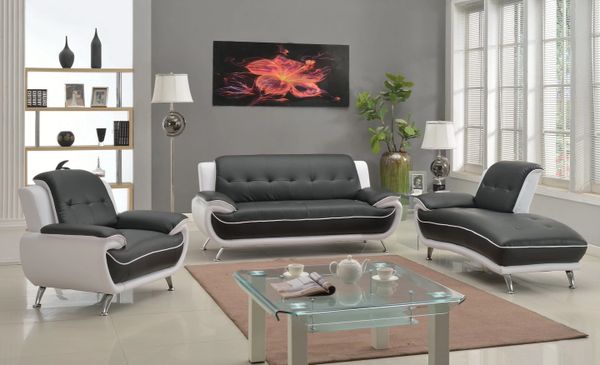 8161 3pc Black White Leather Sofa Chaise Chair Discount