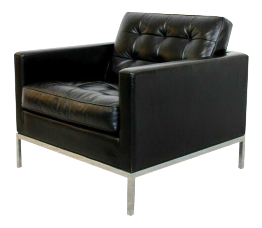 Mid Century Modern Florence Knoll Chrome Cube Black Tufted Leather