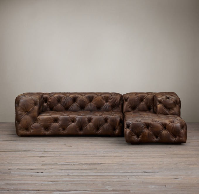 Preconfigured Soho Tufted Leather Right Arm Sofa Chaise Sectional
