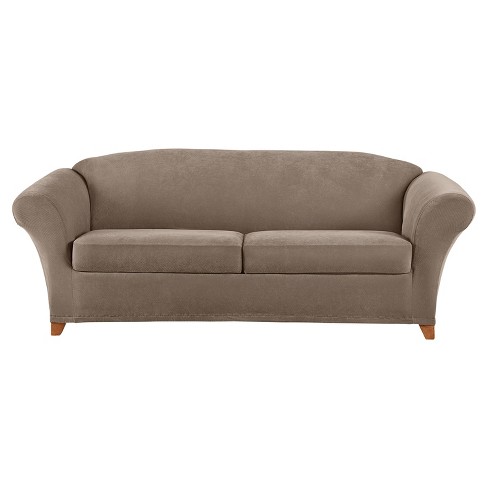 3pc Stretch Pique Sofa Slipcover Taupe Sure Fit Target