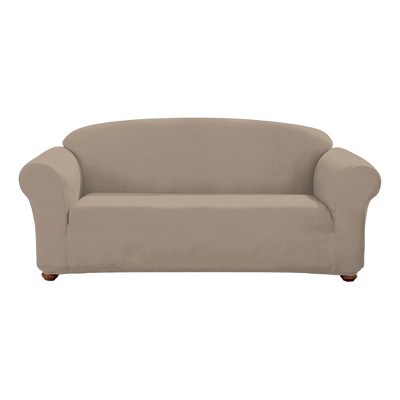 Stretch Suede Three Piece With Back Cushion Loveseat Slipcover