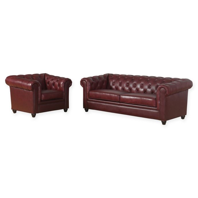 Abbyson Living Valentino 2 Piece Leather Chesterfield Sofa And