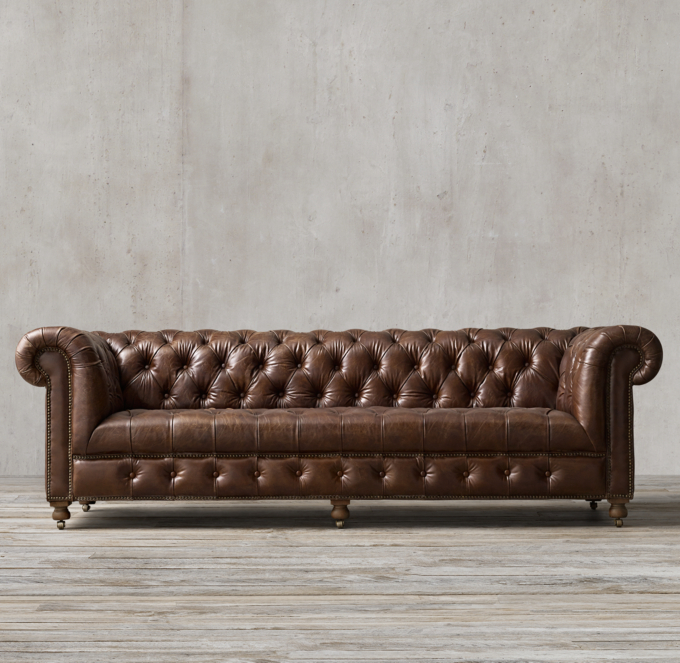 Restoration Hardware Kensington Leather Chesterfield Sofa Aptdeco