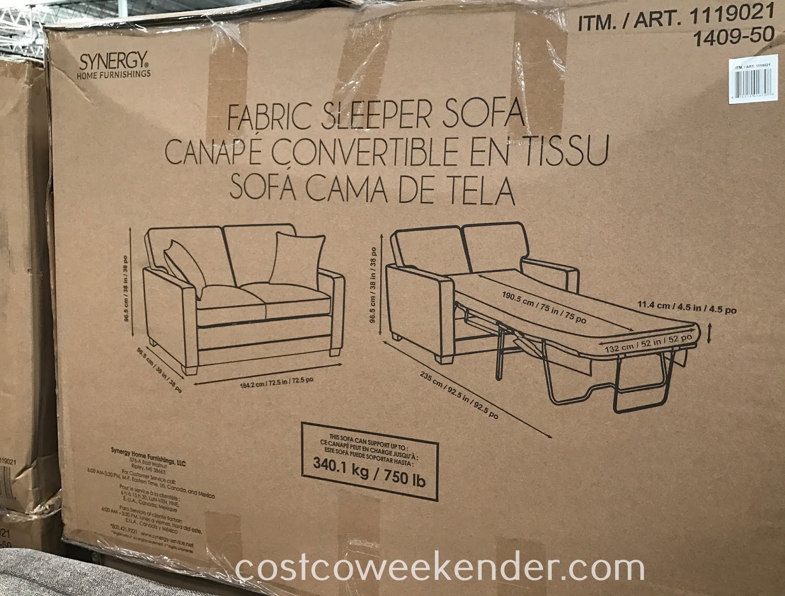 Costco 1119021 Synergy Home Fabric Sleeper Sofa Size Costcochaser