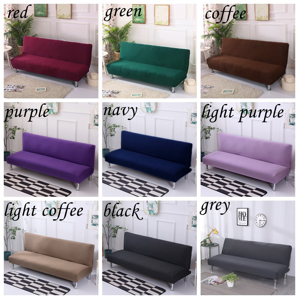 Folding Sofa Bed Cover Solid Color Futon Armless Slipcover