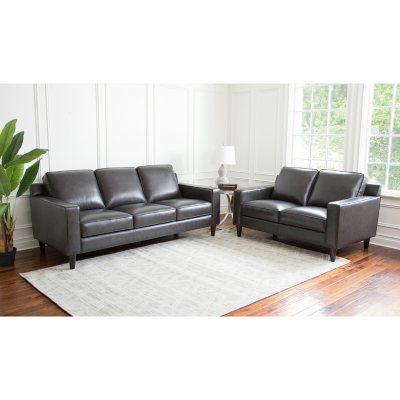 Kennedy Top Grain Leather Loveseat And Sofa Gray Or Cream