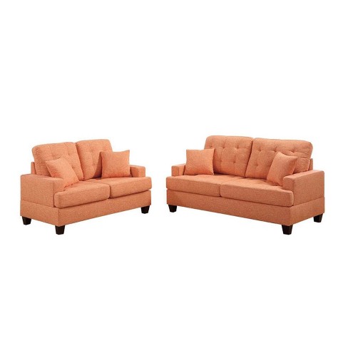 2pc Polyfiber Sofa Set With Plush Cushion Orange Benzara Target