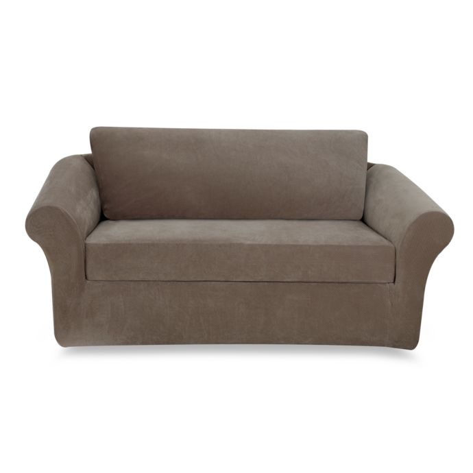 Stretch Pique Taupe 3 Piece Loveseat Furniture Cover Bed Bath