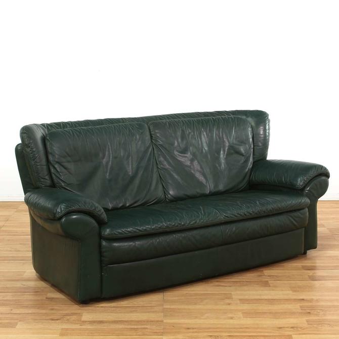 Oversized Dark Green Leather Sofa Loveseat Vintage Furniture Los