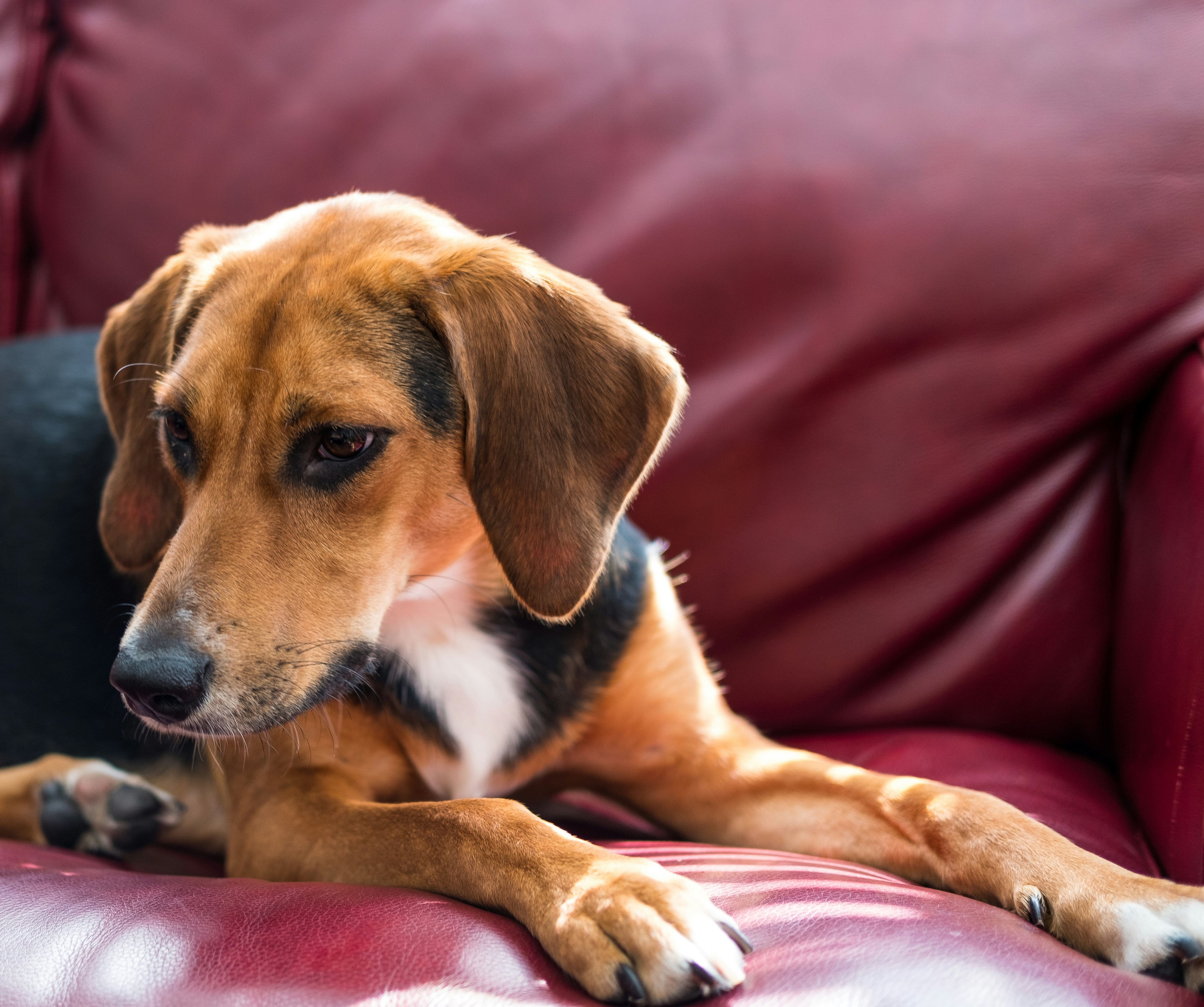 Faux or recycled leather is much thinner and more likely to scratch or puncture. If a dog treat or toy gets lost between the cushions of your leather couch or chair your canine friend might dig between the cushions to retrieve it. However your pooch and kitty don t spell doom for your leather sofa.