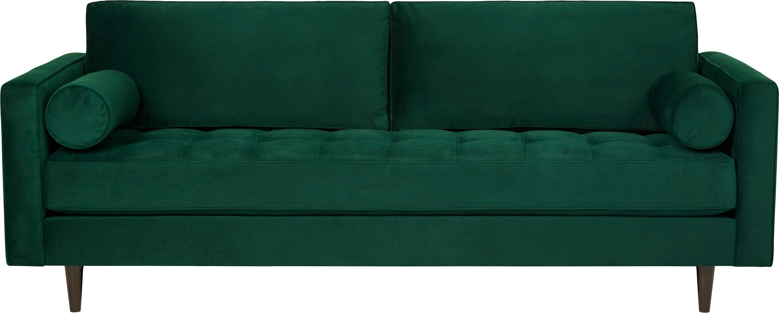 112 5 W Sofa Emerald Green Button Tufted Soft Velour Matte Black