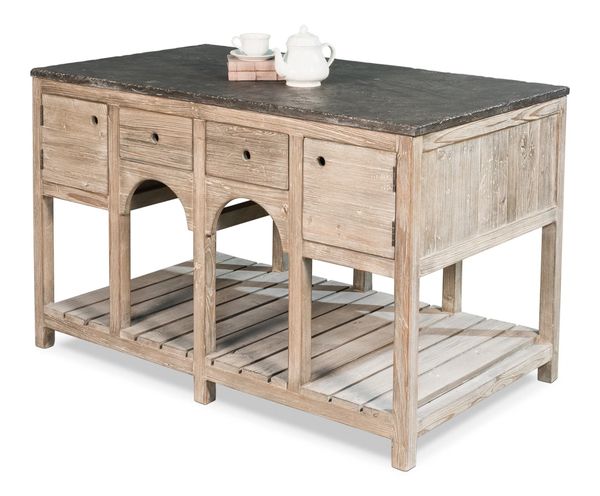 French Country Island Reclaimed Pine Dark Grey Stone Top Bravo