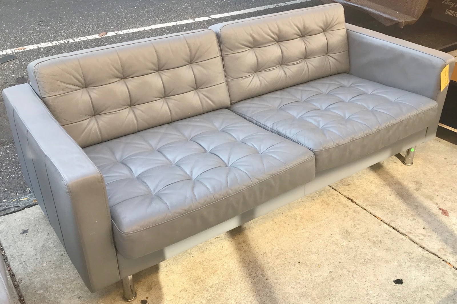 Gray Tufted Leather Sofa