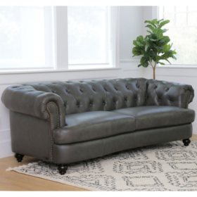 Westlake Gray Tufted Top Grain Leather Sofa Sam S Club