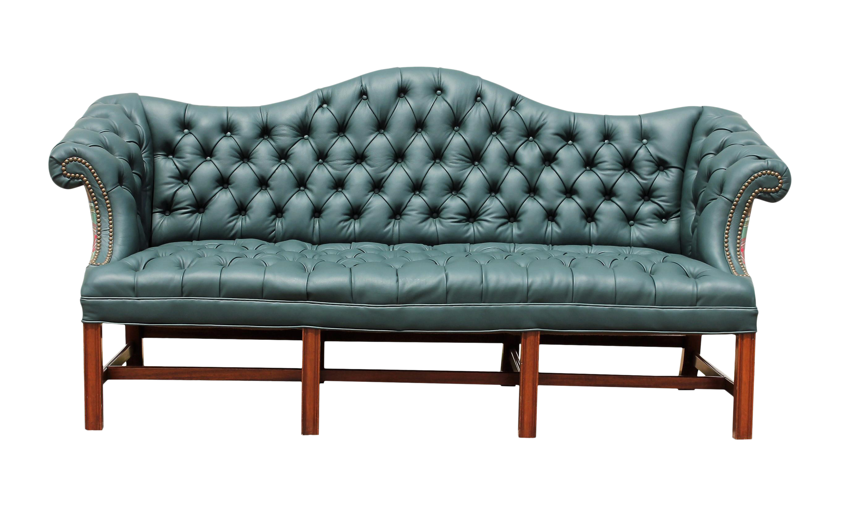 Green Leather Tufted Back With Nail Head Trim Sofa