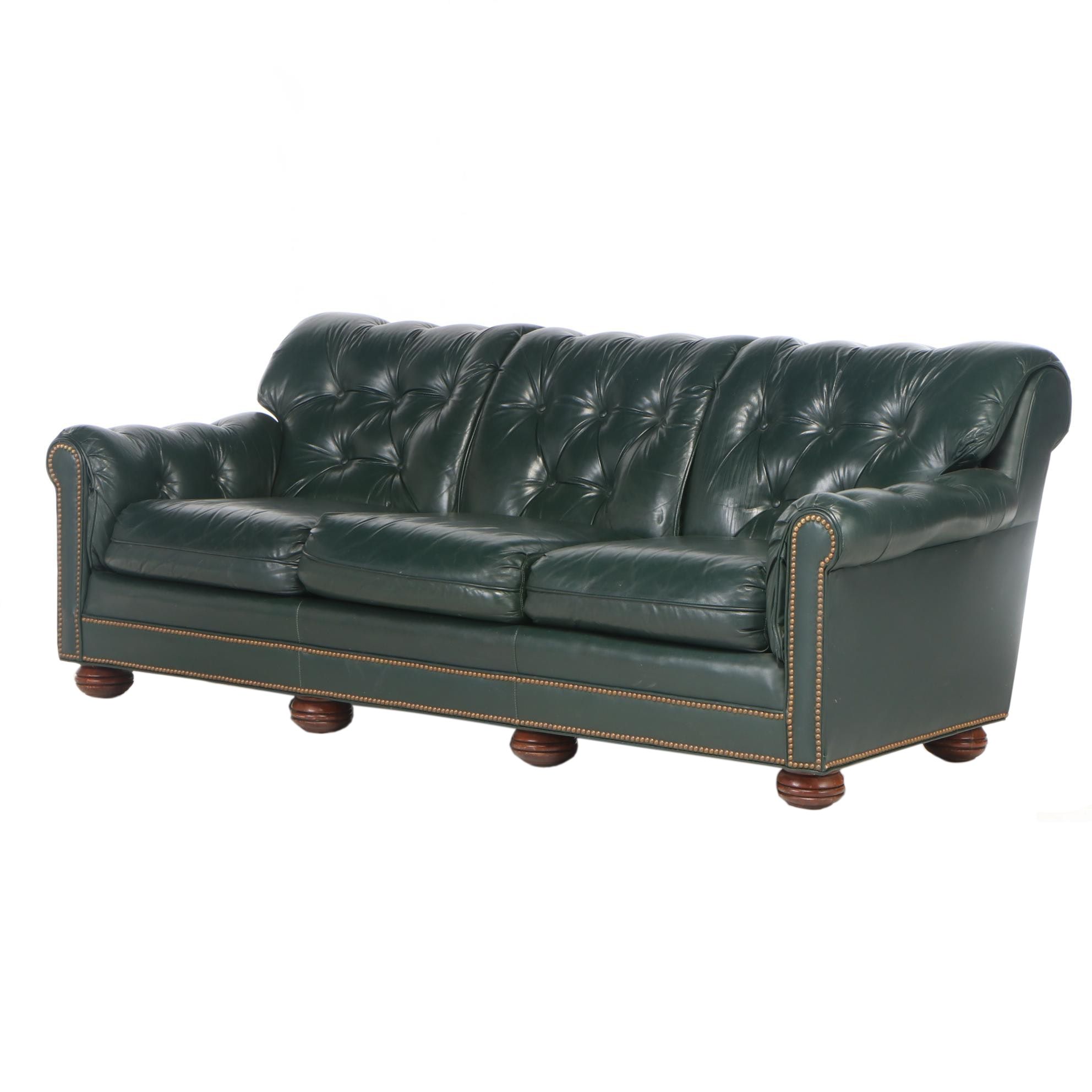 Mckinley Green Leather Button Tufted Sofa Late 20th Century Ebth