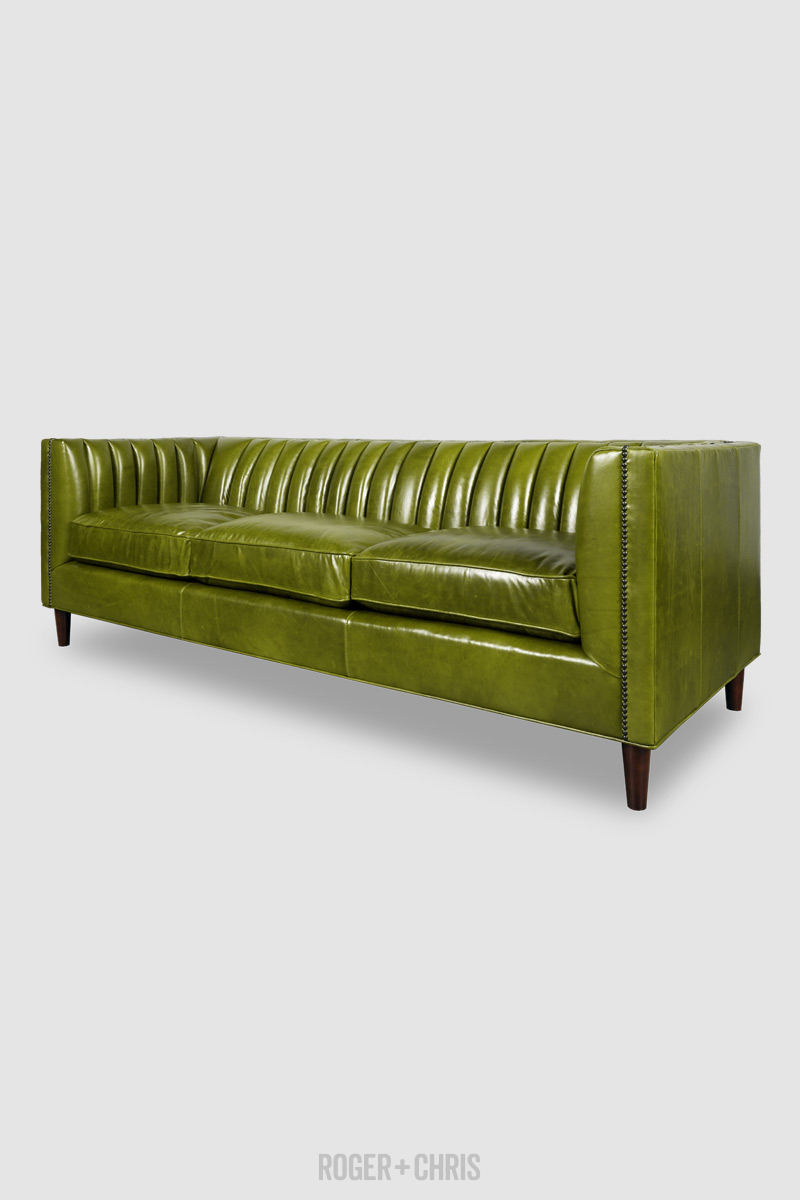 86 Harley Channel Tufted Sofa In Echo Autumn Leaf Green Leather