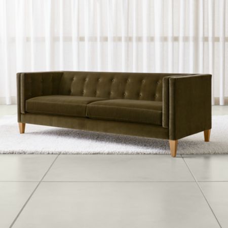 Aidan Dark Green Velvet Sofa Reviews Crate And Barrel