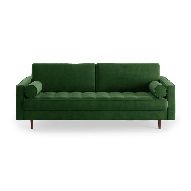Tribeca Mid Century Modern Green Velvet Sofa For Living Room