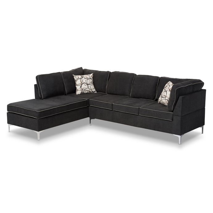 Baxton Studio Richie 3 Piece L Shape Sectional Sofa In Dark Grey