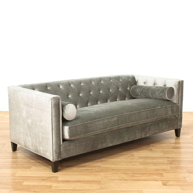 Amazing Regency Modern Silver Grey Velvet Tufted Sofa Mid Century