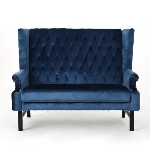 Noble House 2 Seat Navy Blue Tufted Fabric Winged High Back