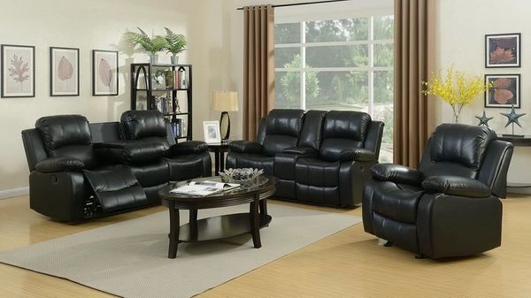 644bl Black Leather Reclining Sofa With Drop Down Console