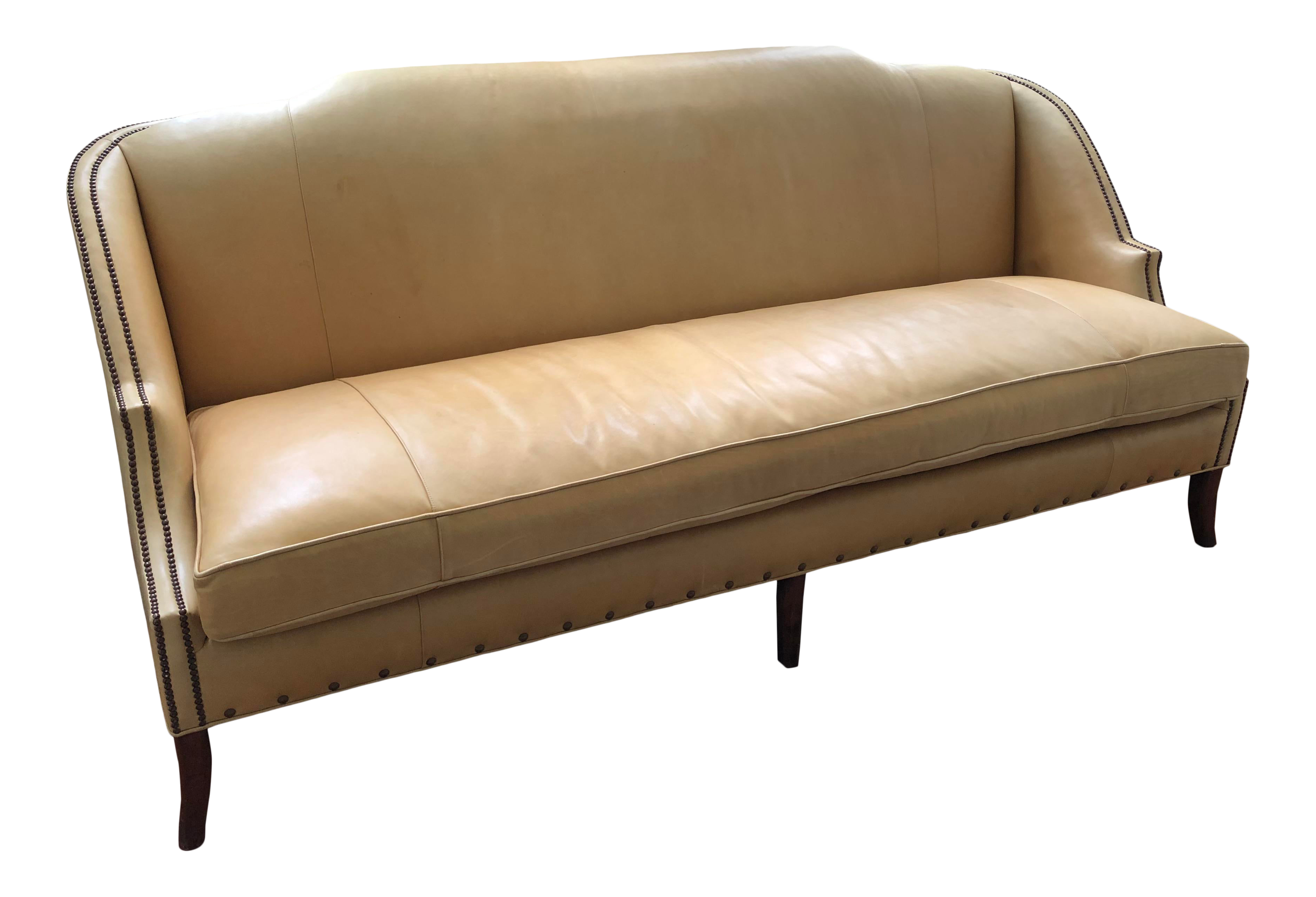 Henredon Nailhead Trimmed Leather Sofa Ebth