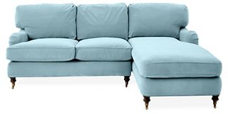 One Kings Lane Brooke Right Facing Sectional Light Blue Velvet