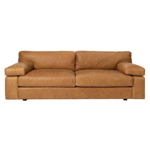 Sampson Italian Leather Sofa Light Brown Safavieh Target