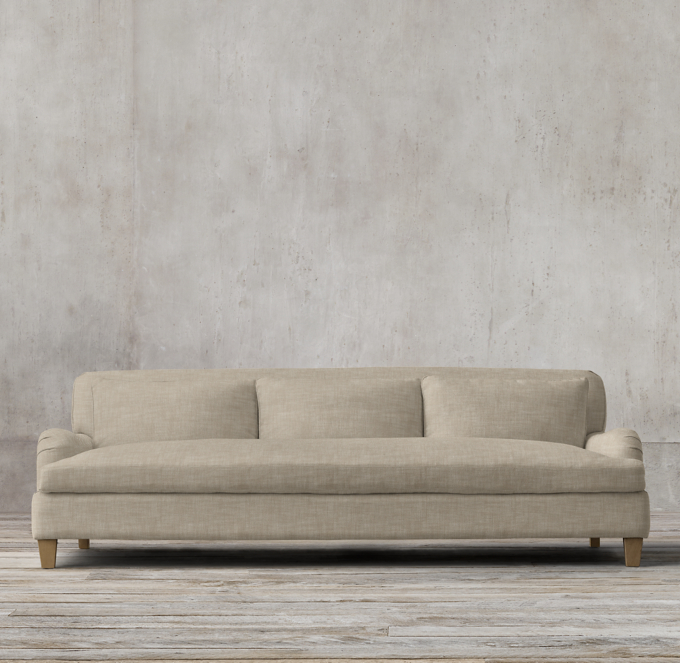 Classic Low Profile Sofa Linen Fabric Sofa Living Room Couch