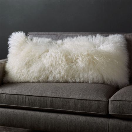 Pelliccia Ivory Mongolian Sheepskin Lumbar Pillow 36 X16
