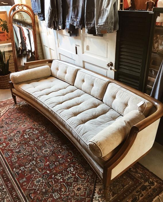 Mid Century Style Custom Walnut Trim Sofa The Hunt Vintage