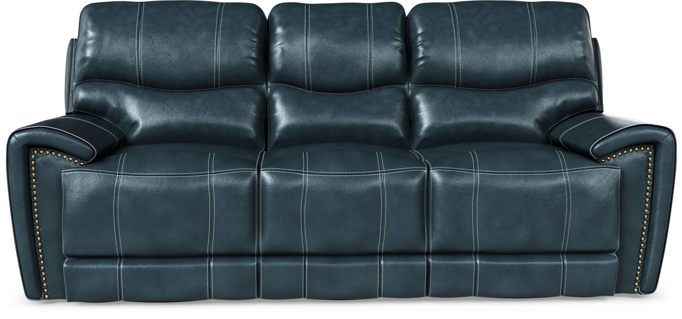 Moana Blue Leather Dual Power Reclining Sofa With Usb Living Spaces