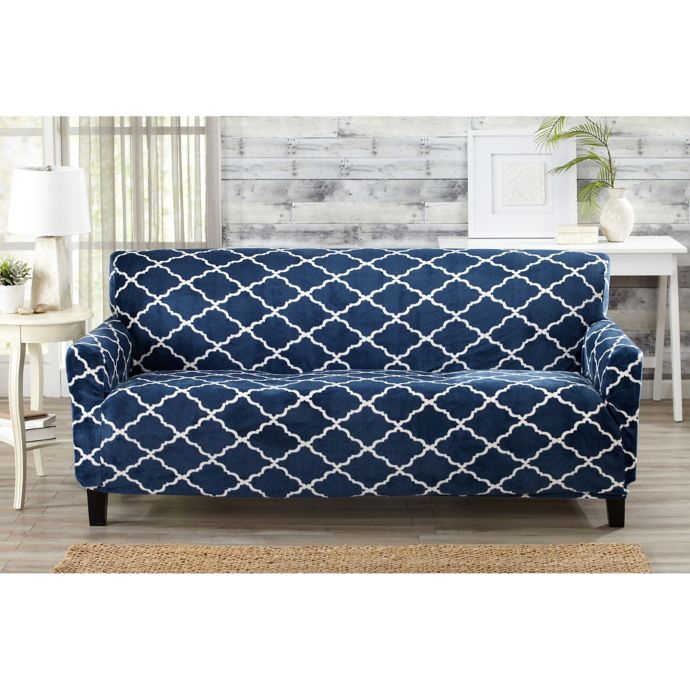Stretch Sensations Stretch Double Diamond Navy Sofa Slipcover