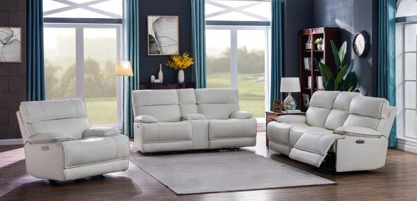 B0227 3pc White Power Reclining Sofa Set Genuine Top Grain Leather