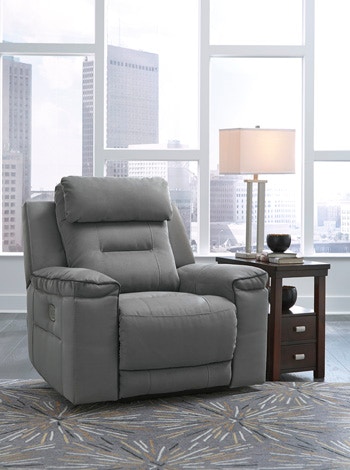 Trampton Smoke Power Recliner W Adjustable Headrest Roberts