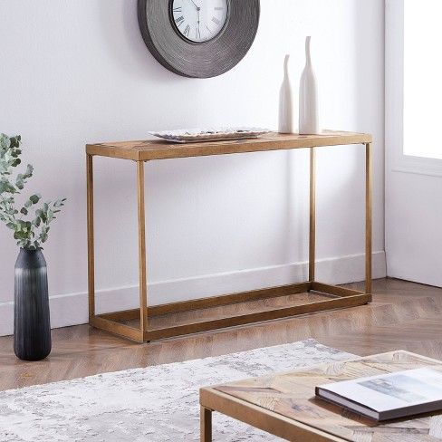 Darheath Reclaimed Wood Patchwork Console Table Natural Brass