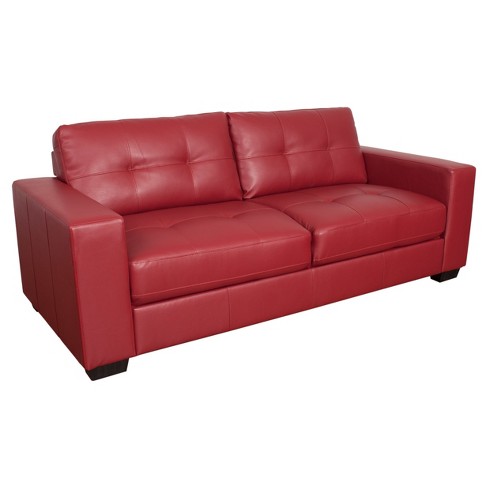 Furniture Of America Wade Leather Tufted Sofa In Red Ebay