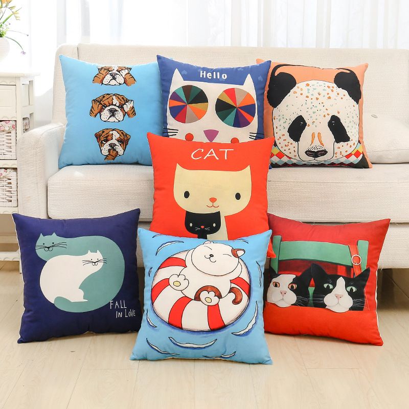 Children Series Cute Cartoon Animal Cotton Linen Decorative Throw Pillow Case Cushion Cover For Sofa Childrens Room