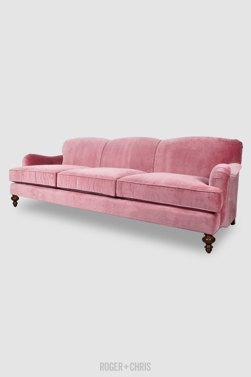105 Basel Tight Back English Roll Arm Sofa In Como Romance Pink Velvet Roger Chris