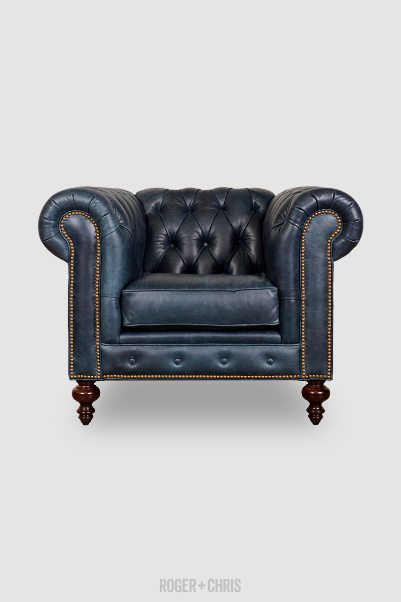 43 Higgins Chesterfield Armchair In Delmar Navy Blue Leather Roger Chris