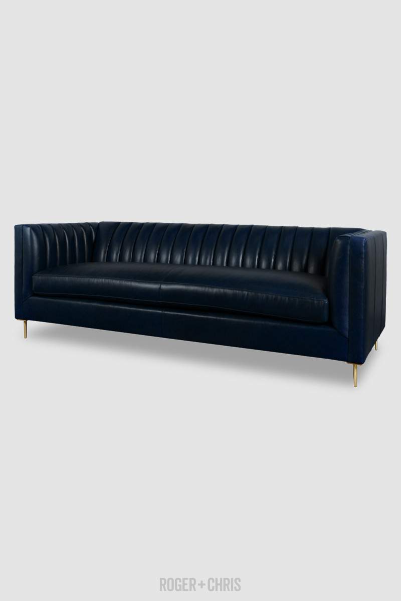 Harley Channel Tufted Modern Sofa In Florence Mezza Luna Blue Crypton Protected Leather Bench Cushion And Brass Legs Roger Chris