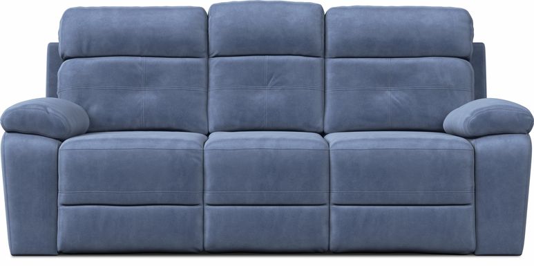 Moana Blue Leather Dual Power Reclining Sofa With Usb Living Spaces