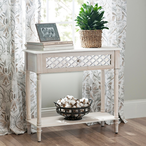 Off White Console Table Rustic Wood Finish Sofa Display Storage